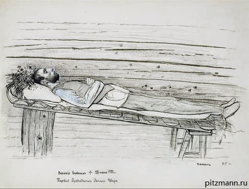 Рисунок Петра Митурича «Велимир на смертном одре»