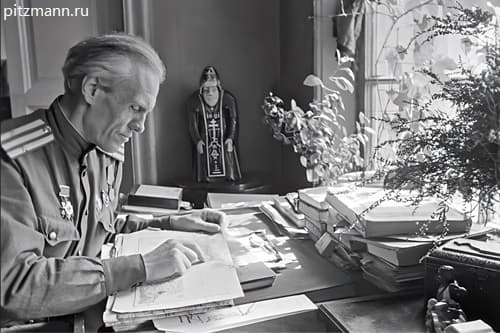 Николай Тихонов в блокадном Ленинграде. Фото С.Струнникова. 1942 г.