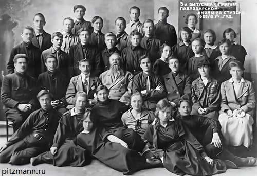 Павел Васильев (в центре). Надпись на фото: 5-я выпускная группа Павлодарской школы 2-й ступени. 1925/6 уч. год
